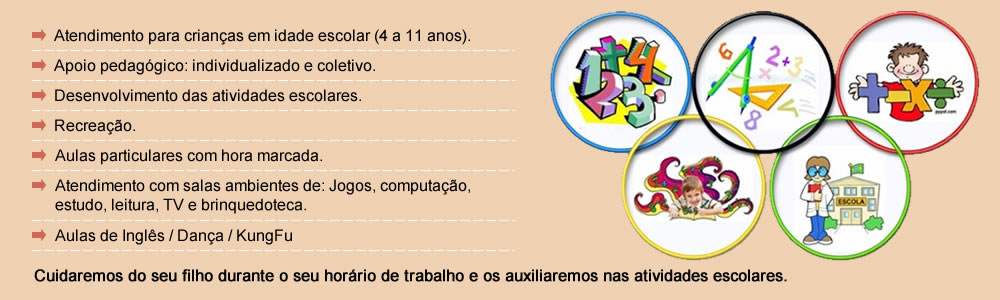 Cuidaresmos do seu filho durante o seu horário de trabalho e os auxiliaremos nas atividades escolares.